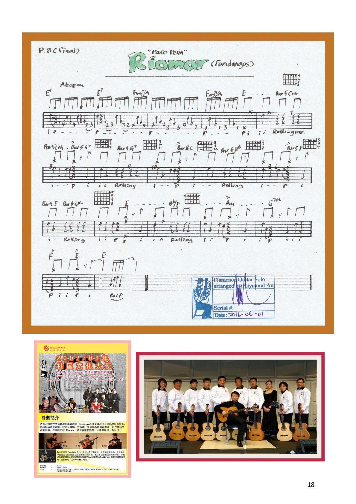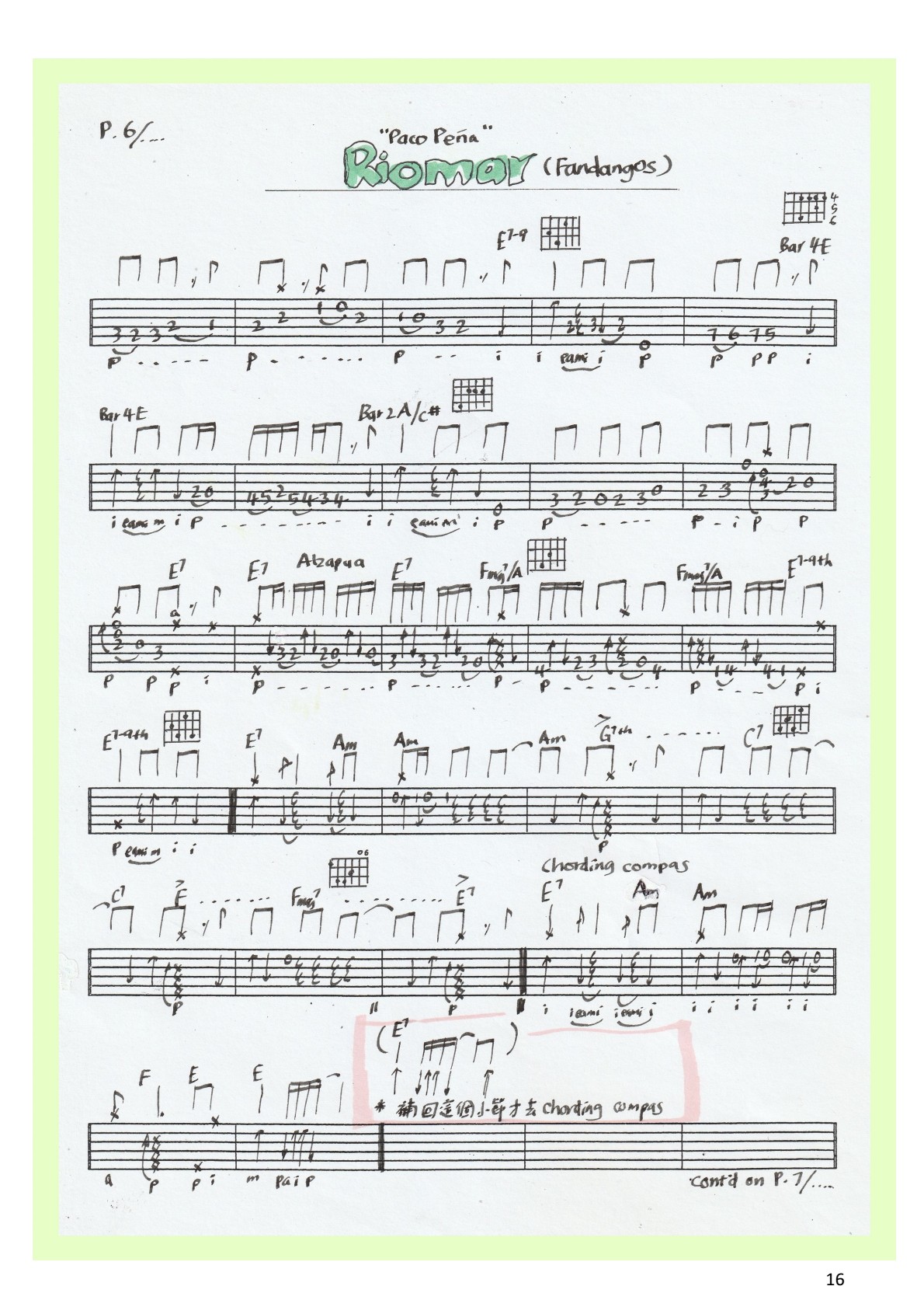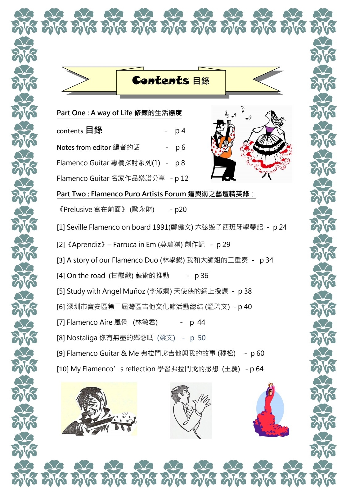 同時,對佛蘭明高結他音樂有興趣的朋友來說,這期雜誌內還包含三首十分動聽的結他樂譜給讀者們學習參考,如第一首吾師Paco Peña的《Raimor》(Fandangos):