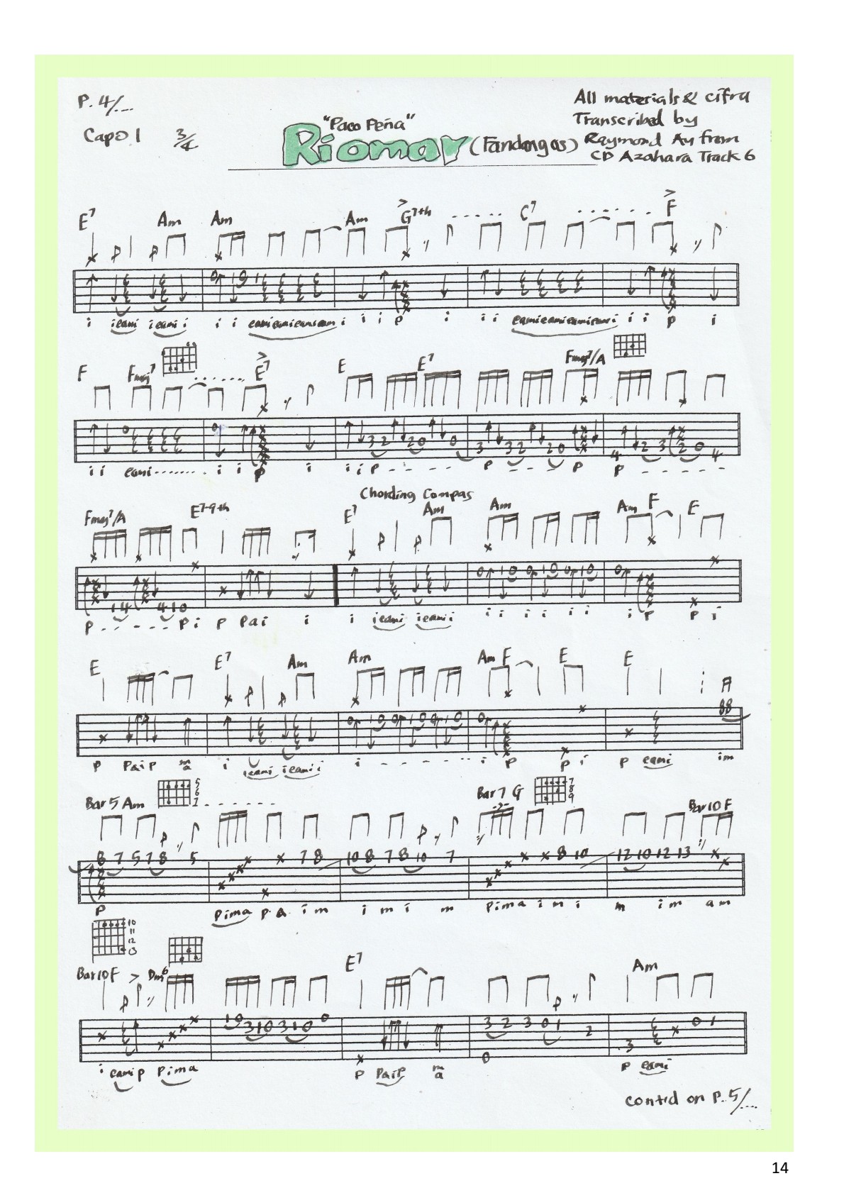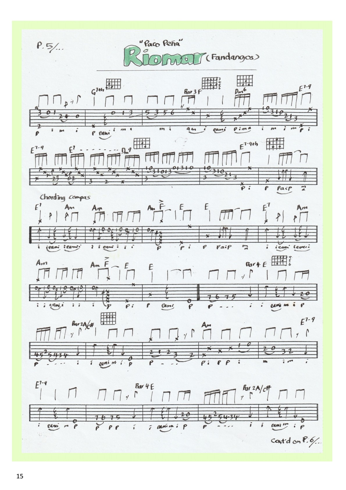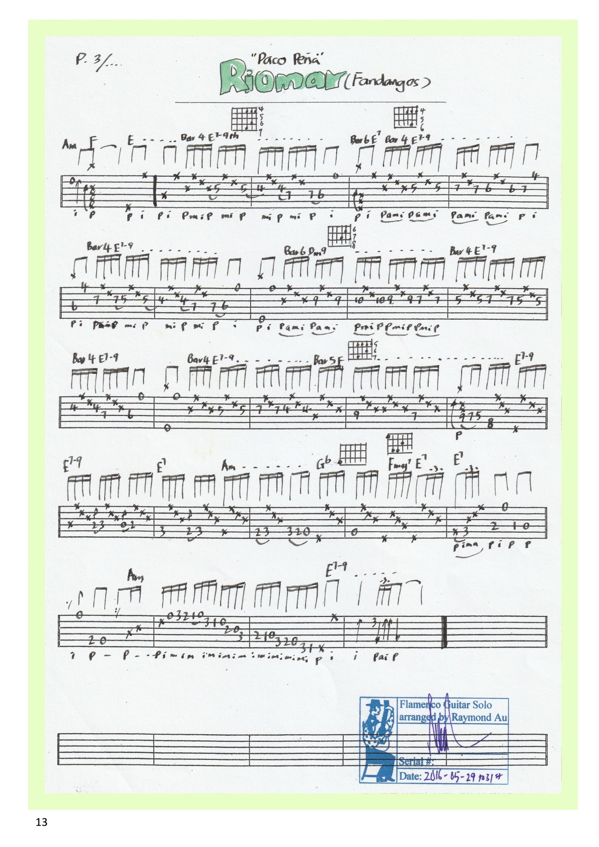 同時,對佛蘭明高結他音樂有興趣的朋友來說,這期雜誌內還包含三首十分動聽的結他樂譜給讀者們學習參考,如第一首吾師Paco Peña的《Raimor》(Fandangos):