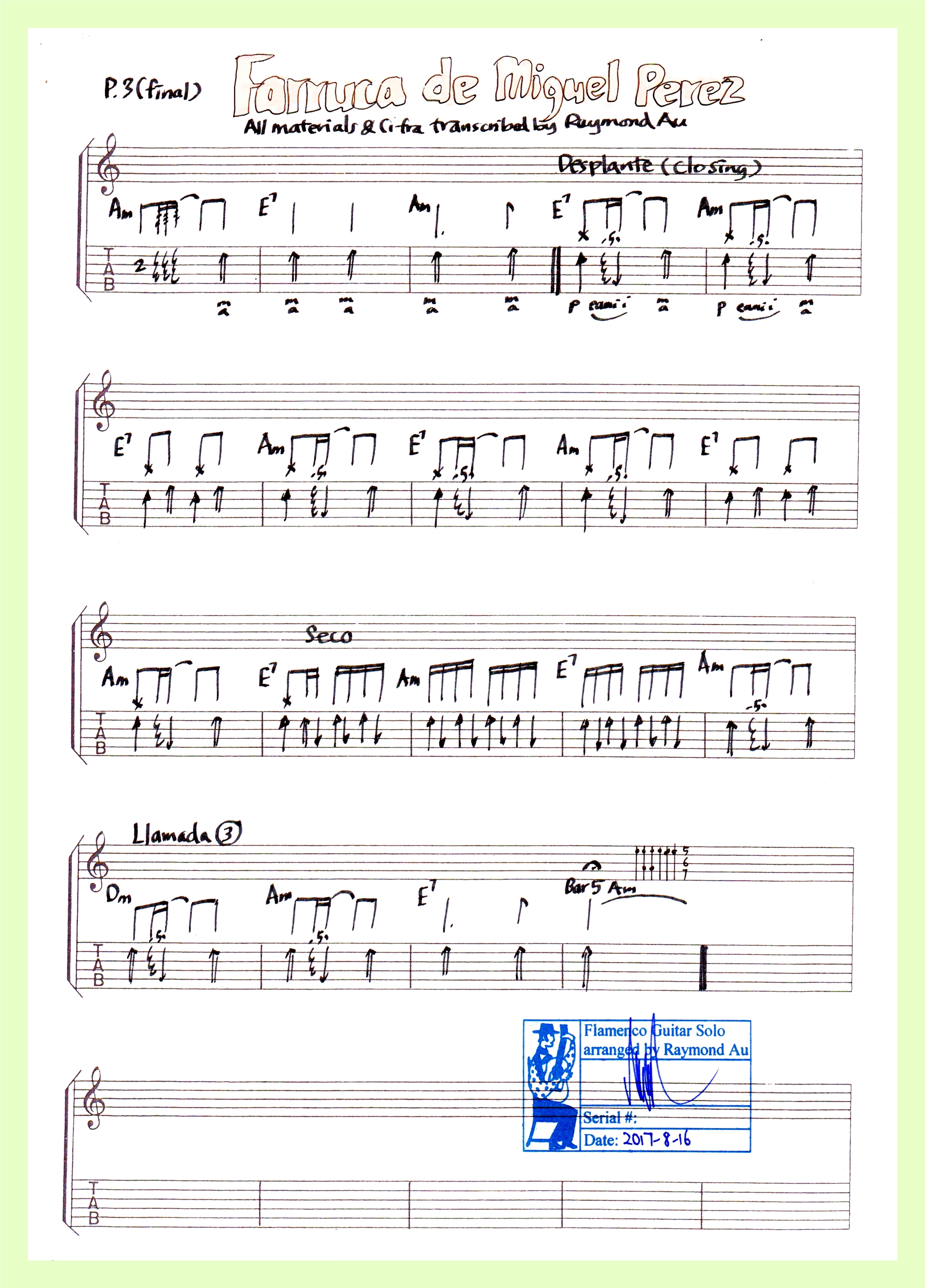 第二首是由鄭健文根據西班牙老師Miguel Perez上課錄音《Farruca》整理的六線譜。Miguel Perez是知名的佛蘭明高結他教師,鄭健文於1991年在Seville隨他學習。