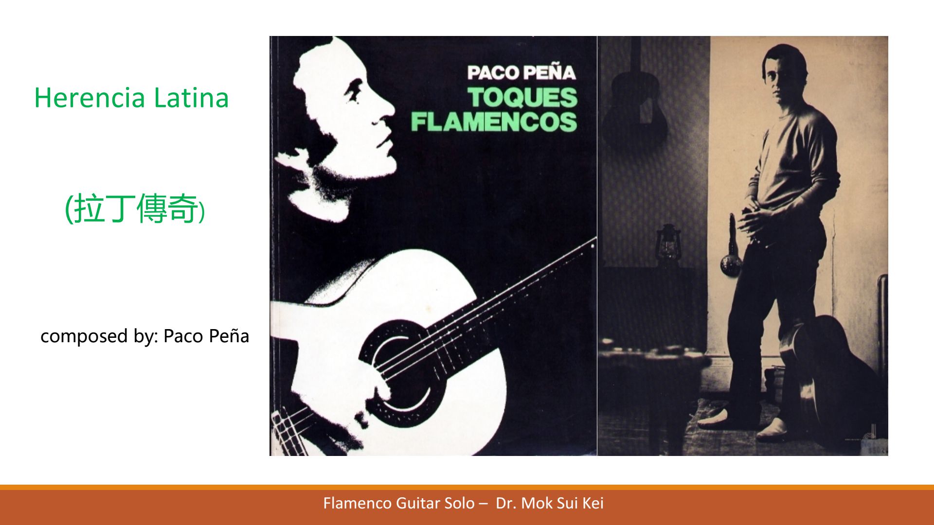 我自己在是次音樂會主要彈奏3首獨奏歌曲及2首三重奏。獨奏選取了2首Paco Peña 在上世紀六、七十年代的作品,分別是Farruca 曲式的Punta Y Tacon 及屬於Rumba 的 Herencia Latina,。這2首歌曲都有其代表性。