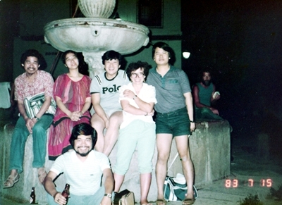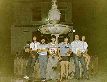 在Centro Flamenco期間,由於西班牙天氣酷熱,我們常常喜歡在夜晚聚集在學生宿舍外的小馬噴泉旁,一邊聊天一邊喝啤酒,往往聊到凌晨三點才回去休息。就像照片中來自台灣的學員張少華,他也參加了我們的聚會。此外,他同時修習了Paco和John Williams的課程,但他提到,因為古典結他國際研習班人數眾多,這讓學習變得有些困難。