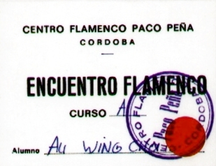 1982年中,筆者透過函授課程學習Flamenco結他時,當時在英國的老師Ray Mitchell先生建議我參加Paco Peña在西班牙科爾多瓦(Cordoba)舉辦的「第三屆Centro Flamenco結他國際研習班」,來提升自己對這門藝術的整體認識與水平。於是,我根據老師提供的資訊,直接寫信詢問Paco Peña有關報名的詳細內容。隨後筆者收到Paco的回信有關「第三屆Centro Flamenco結他國際研習班」的詳細介紹,和附上下面的課程單張作參考: