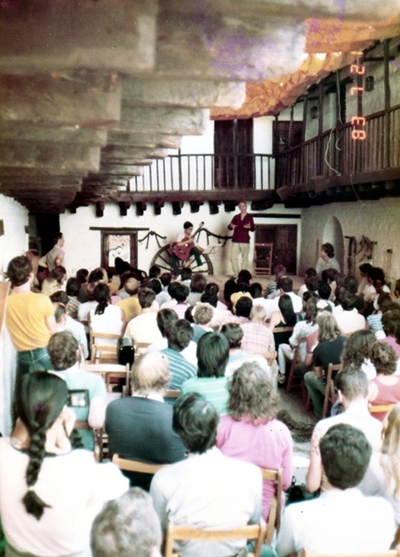 除了日間在Centro Flamenco學習外,每天晚飯後在學生宿舍大堂,都有很多學生們在互相交流學習,氣氛十分熱烈。上圖正是El Pele到來與年青的Cordoba結他手Vicente Amigo一起表演Bulerias,非常精彩。
