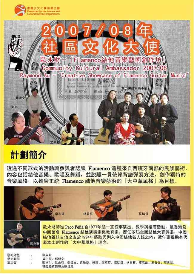 歐Sir是我的Flamenco啟蒙老師,沒有歐Sir,我的生命裡就沒有Flamenco,歐Sir每逢有音樂會表演總會帶著鄭健文(肥Man師兄)及我,當年我倆總是陪著歐Sir南征北戰地在香港推廣Flamenco結他音樂。