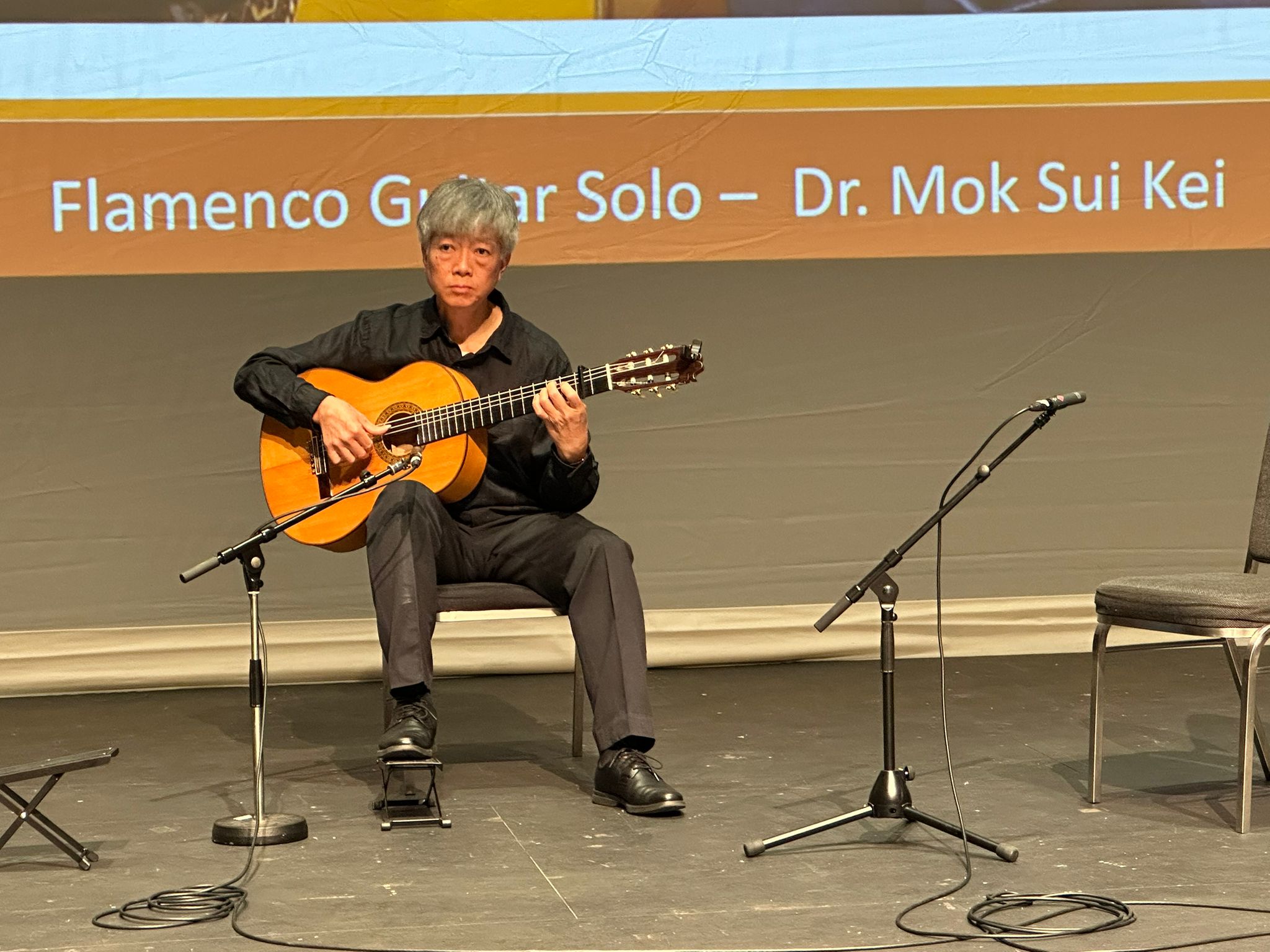 音會場刊內提到我是在上世紀80年代初期跟歐老師習琴,當時我是中學四年級,學習一年左右就因公開考試及升讀大學而暫停了跟老師學習,大學畢業之後又因工作關係,只能斷斷續續的在工餘時自行練習。到公元2000年左右再有幸跟隨老師學習,一直覺得歐老師就是Flamenco:從彈奏技巧、音樂理論,歌曲內容、創作脈絡、不同流派特色及發展都「了然於胸」,不論學生的技術水平在那個起步點,老師都可諄諄善誘,因材施教。更重要的是歐老師本身就體現了Flamenco 是A way of Life的本質!對Flamenco 的追求,對推廣Flamenco 的執著,對培養後輩傾囊相授,對生活樂觀正向的面對,這都是Flamenco 音樂內各Palos 所想表達的精神!