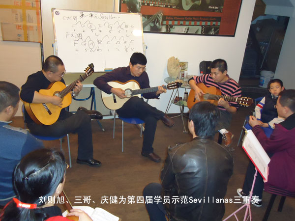 2010年12月4日下午,尽管北方的大连寒风瑟瑟,但在大连佛拉门哥吉他艺术团却如同春天一般。我们迎来了大连第四届佛拉门哥吉他入门提高班的八位学员。而前三届的部分学员也闻讯赶到,和大家一起分享第一单元Sevillanas的学习。