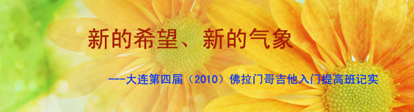 自从2007年大连第一届佛拉门哥吉他入门提高班开课以来,经历了不少坎坎坷坷,但我和春伟以真诚的态度和坚持不懈地努力,走过了四个春秋。期间得到了欧老师的大力支持和无私奉献以及老多和刘泷骏的技艺传授,还有大连各界朋友的鼎力相助。前三届的学员们带着对佛拉门哥艺术深深地眷恋,不断走向成熟。正是在这样一种背景下,第四届的学员们为我们迎来了新的希望、新的气象。我们将会沿着欧老师正确的艺术方向继续一路走下去。我和春伟也会不断提升自己,为佛拉门哥艺术在大连乃至全国的推广奉献一份力量。