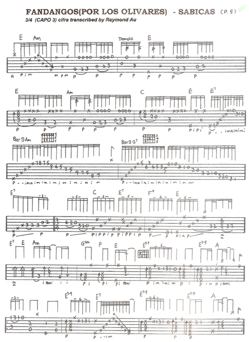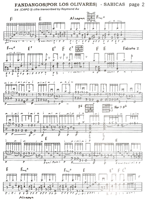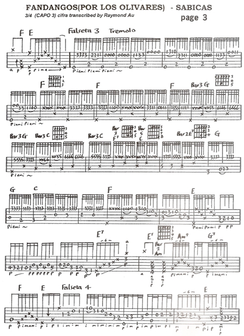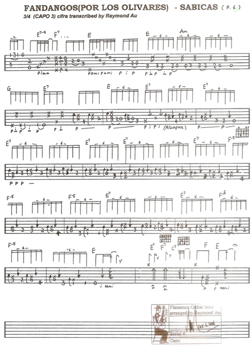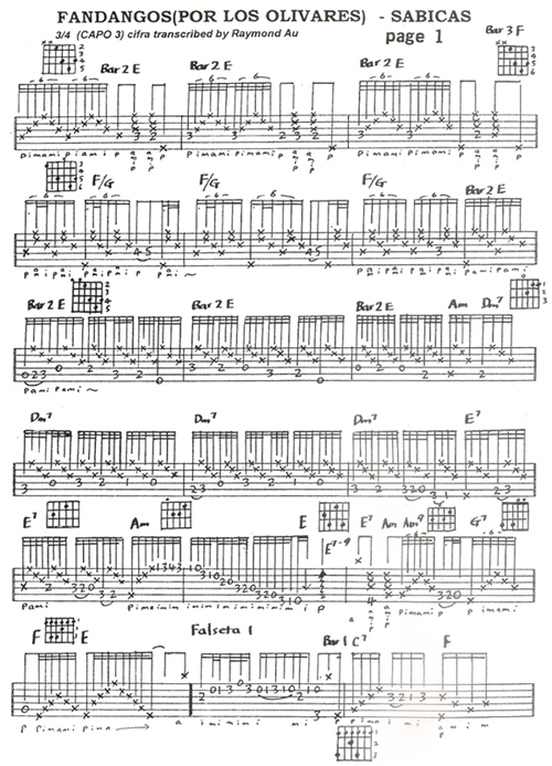 最後,送上一首取自Sabicas的著名LP唱片"Flamenco Puro"中的經典樂曲 Por Los Olivares(Fandangos) 給讀者們學習欣賞,此曲除了精湛的演奏技巧和音色處理外,Sabicas在創作和編排Falseta方面確是非常出色,值得大家用心學習。努力!