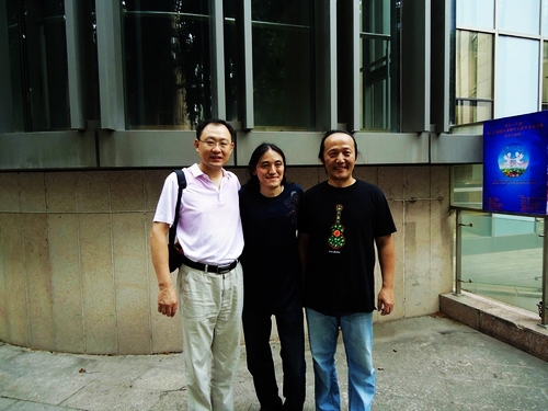 左起:春伟、伍贻军老师、蒋梵老师、笔者摄于大师班前