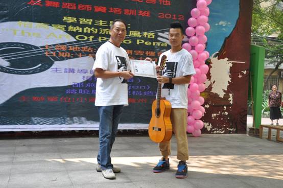 El Duende小組藝術顧問梁中堅頒發証書給學員王小波