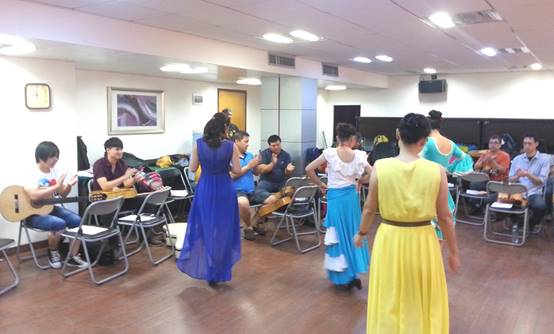 在課程的最後一天,歐老師安排吉他班和舞蹈班學員一起上課,也讓我們更多瞭解怎樣為舞蹈伴奏,當我們在共同的Compas裡隨著舞蹈去做變化時,那種感覺真的是無法用言語表達,真的希望時間能停留在那一刻!