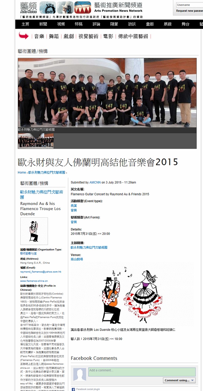 此外,本港一個專門報導香港及澳門所有藝術活動的網站Arts-News(藝術推廣頻道)已正式把我們藝術團列入其網頁之內,並替我們的活動作出介紹。筆者對此安排深感榮幸,這代表著Los Duende的認受性也大大提高。因此,我們再次衷心感謝大家的支持,也一定再接再勵,努力向前的!