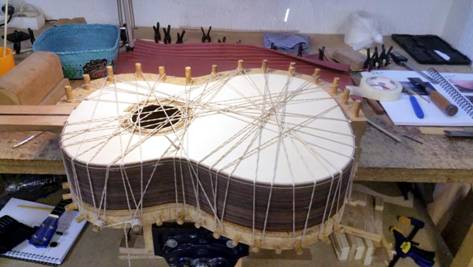 西班牙吉他專業制作課程第3周是面板最后的調試完成後,便開始進行組裝的工序,大家在輕鬆愉快的環境下各自制作。