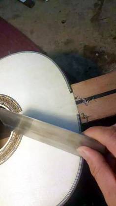 接著是鑲裝飾邊綫和粘指板的步驟