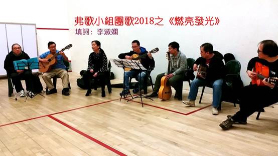 同時,弗歌小組在Sylvia和Angela的努力不懈推動下,各成員都能一直保持定期的排練及十分勤奮地去練習。 最近,Angela更將Those were the days這首歌曲填上中文歌詞,內容就是講述弗歌小組成員間的友誼和發展目標,而《燃亮發光》就是代表大家心中都有一種為Flamenco藝術奉獻的熱誠和精神一樣,願為香港作出無私的貢獻。再者,Angela是以Flamenco的風格來演繹此首團歌,尤其是末段她更將Compas的掌控發揮得非常出色和很有Flamenco味道呢!其實,這次的創作嘗試,就正正是代表了〈大中華風格〉的模式啦。Great job, Angela !