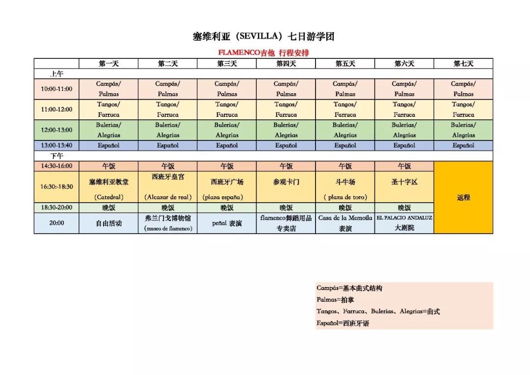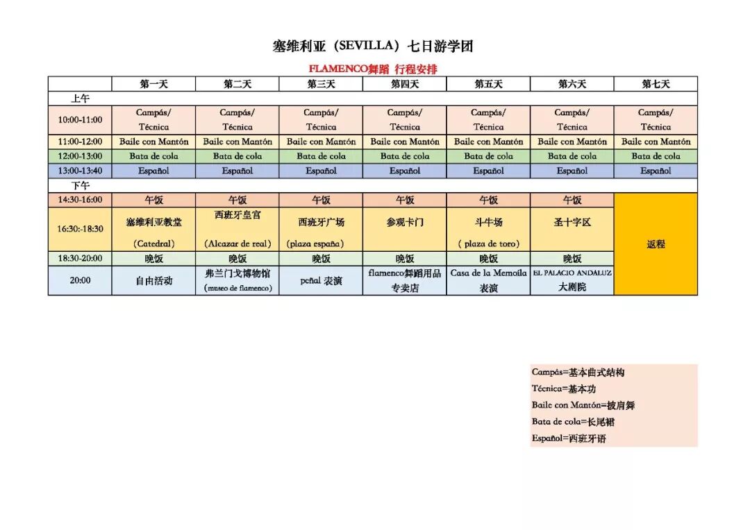 注:1、如不参与flamenco课程教学的亲属及陪同者,可减免所有课程费用;上课期间请自行安排。