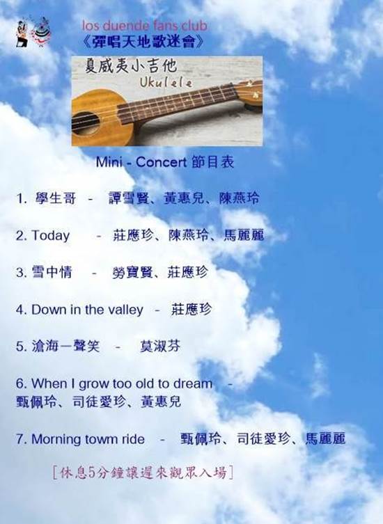 最後,附上今次【彈唱天地歌迷會】首個Mini-concert的正式演出節目表單張給大家參考。另外,由於音樂會節目頗多及時間也十分緊逼,所以為做好全場的時間管理,請留意以下的特別安排: