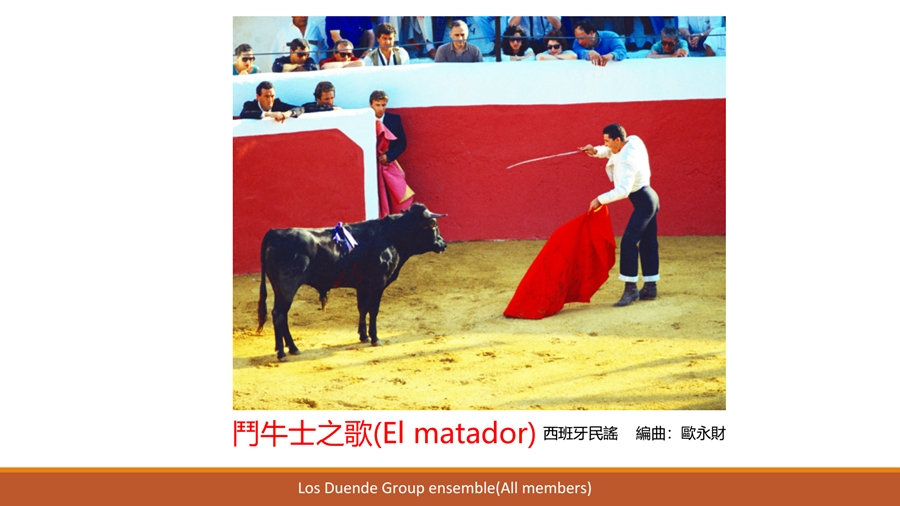 今次我主要伴奏三首曲目 ,包括 「Besame Mucho」、「默默的祝福」和「為友誼乾杯」;以及encore的「El Matador」(鬥牛士之歌)。